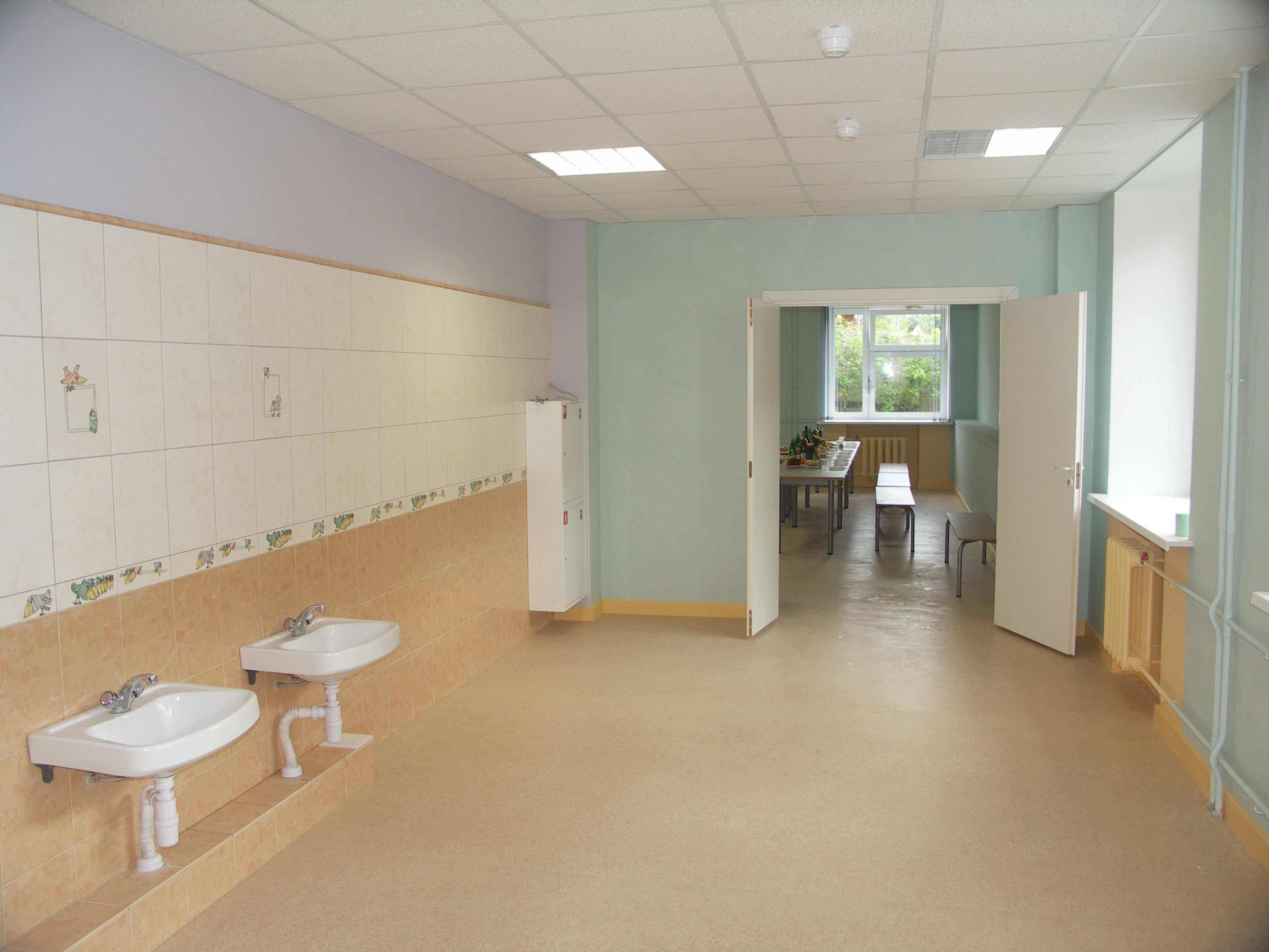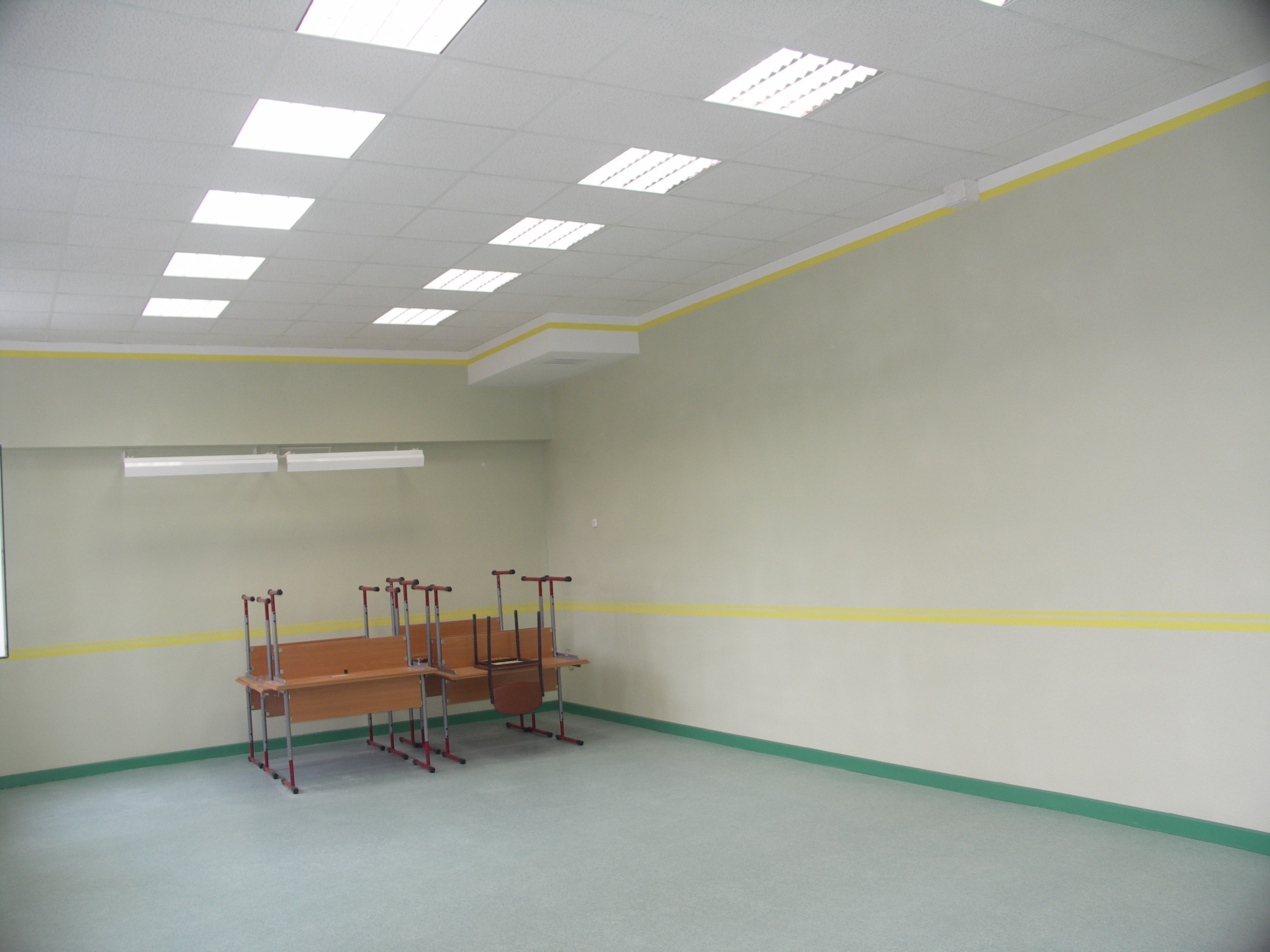 Блок А включает в себя 12 помещений для младших классов. Отделка выполнена из современных материалов: имеющие пожарные и гигиенические сертификаты